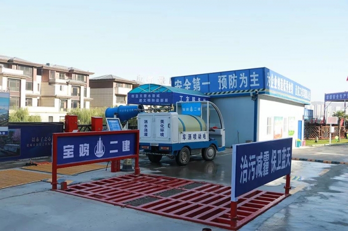 綠色施工落實到點。從公司到項目部始終將“綠水青山”的環(huán)保重責(zé)力扛在肩,積極響應(yīng),把治污減霾、揚塵防治工作作為施工內(nèi)容的重點之一。施工現(xiàn)場門口停放了灑水車和霧炮機,定期對現(xiàn)場路面進行清掃。采用圍擋、裸土覆蓋、垃圾歸類封閉、自動洗車臺等方法控制施工揚塵?,F(xiàn)場設(shè)置有環(huán)境檢測儀,與自動噴淋系統(tǒng)相連接,達到治污減霾的效果。