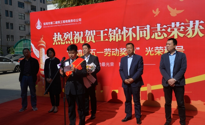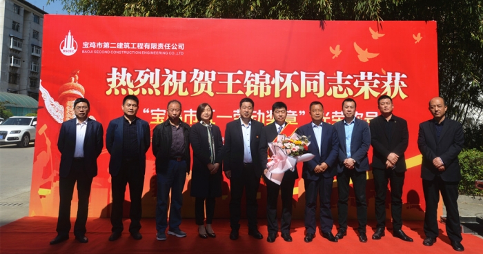 4月27日上午,寶雞市慶?!拔逡弧眹H勞動節(jié)大會在萬福酒店召開,公司第三十四項目部項目經(jīng)理王錦懷同志榮獲寶雞市“五一勞動獎?wù)隆惫鈽s稱號。公司在總部辦公樓前舉行了歡迎儀式,公司董事長胥立、總經(jīng)理張小揚、黨委書記景旭東、黨委副書記王紅衛(wèi)、工會主席王建成等領(lǐng)導(dǎo)出席,總部全體人員、第三十四項目部員工代表參加。