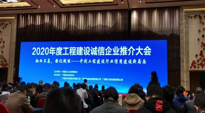 12月4日,由中國施工企業(yè)管理協(xié)會主辦的2020年度工程建設誠信企業(yè)推介大會在廣西南寧召開。協(xié)會領(lǐng)導、會員企業(yè)領(lǐng)導、工程建設行業(yè)誠信典型企業(yè)代表、信用評價參評企業(yè)代表、企業(yè)信用管理人員、行業(yè)信用專家,信用領(lǐng)域?qū)I(yè)人員共計400余人,公司行政綜合部經(jīng)理王磊參會。