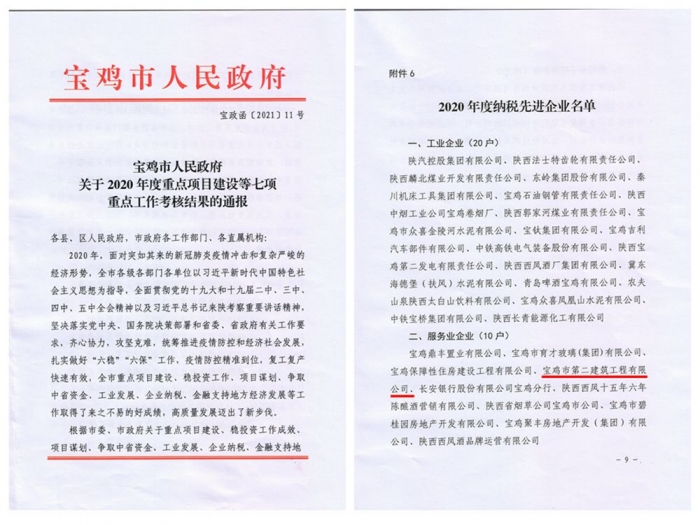 2月20日上午,在寶雞市人民政府“2020年度目標(biāo)責(zé)任考核暨招商引資大項(xiàng)目表彰大會(huì)”上,公司榮膺2020年度“納稅先進(jìn)企業(yè)”稱號(hào)。
